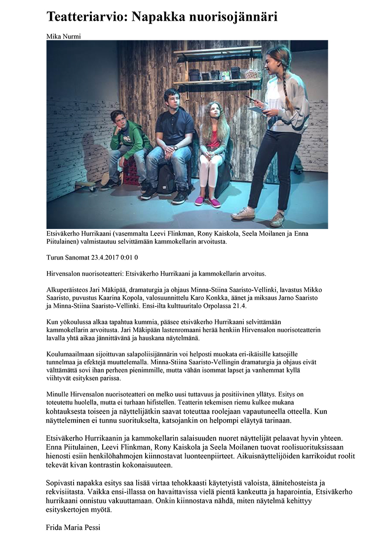 ETSIVÄKERHO HURRIKAANI JA KAMMOKELLARIN ARVOITUS – Nuorisoryhmä, kevät 2017