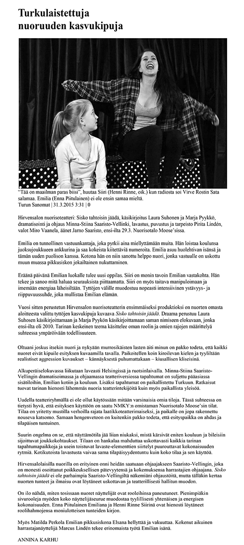 SISKO TAHTOISIN JÄÄDÄ – Nuorisoryhmä, kevät 2015